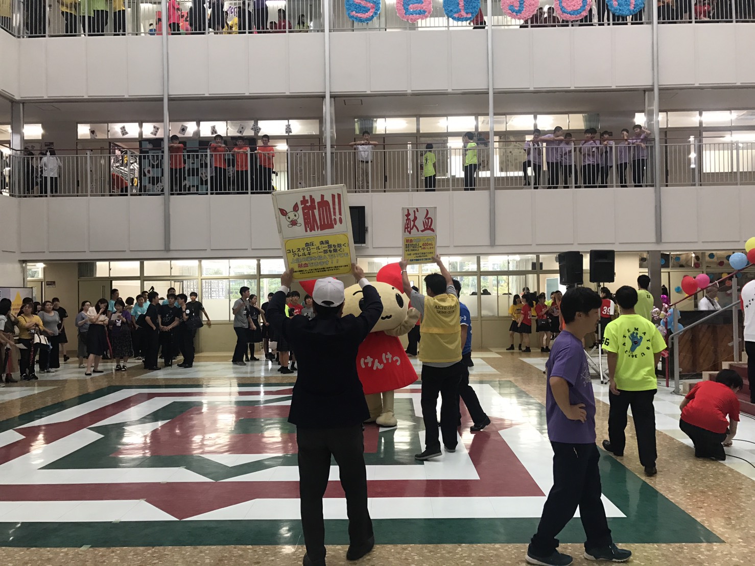 9月20日(木)星城高校(豊明市)文化祭開催に合わせて「献血活動」を実施いたしました。雨が降るあいにくの天気でしたが、校内で献血へのご協力を呼びかけましたところ、多数の方にご協力を頂きました。毎年、先生、生徒さんはじめ文化祭来場者にご協力を頂いておりますが、少子高齢化の時代にあり、若年層に献血に関心を持ってもらい、献血率の向上を図ることが求められている中、高校での献血活動は大きな意味があると考え、今年で11回目の開催となりましたこと、皆さまのご協力と関係者各位に心より感謝申し上げます。献血実績は、受付数74名、うち献血できた方は59名(400ml×45名、200ml×14名)でした。2ZZC、2Z四献推進合同委員長にも活動に訪問して頂きました。