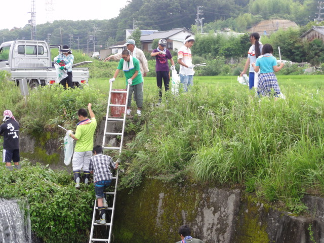 今回はホタルの幼虫放流場所から下流に向かって0.6kmの地点までゴミ拾いを行いました。