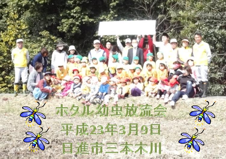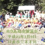 2011年 ホタルの幼虫の放流会 https://www.aichichuo-lc.com/2022-2023web/gallery/2552/ Thu, 10 Mar 2011 10:41:01 +0000 https://www.aichichuo-lc.com/2022-2023web/?p=2552  2011年3月9日(水)10時~ 日進市三本木川 にて、10回目となるゲンジホタルの幼虫の放流会を行いました。放流場所のすぐ近くの三本木保育園の園児70名と楽しく、安全に、想いを込めて幼虫と餌のカワニナをの放流いたしました。
